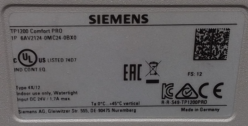 SIMATIC HMI TP1200 Comfort Pro