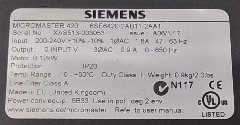 Siemens frequentieregelaar