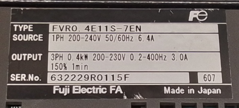 Uitgang: AC 200 - 230V, 3 fasen, 3A, 0,2 - 400Hz, 150% 1min