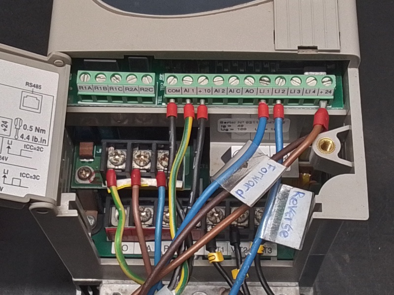 Uitgang: AC 0...200-240V, 3 fasen, 0,5 - 400Hz, 4,8A