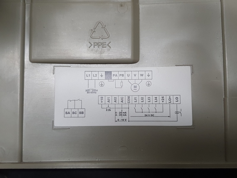 Indien er geen manual van deze regelaar is te vinden, kunt u de manual van een Telemecanique Altivar 28 gebruiken deze heeft de zelfde aansluitingen en parameter settings.
