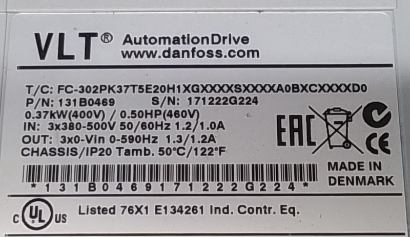 Ingang: 3x 380 - 500VAC, 50/60Hz, 1.2/1.0A
