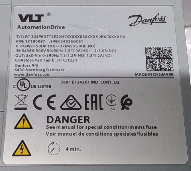 Ingang: 3x 380 - 500VAC, 50/60Hz, 1.2/1.0A