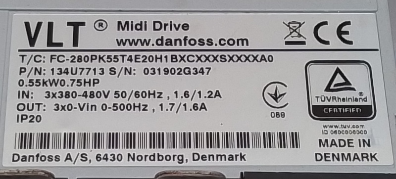 Ingang: 3x 380 - 480VAC, 50/60Hz,1.6/1.2A