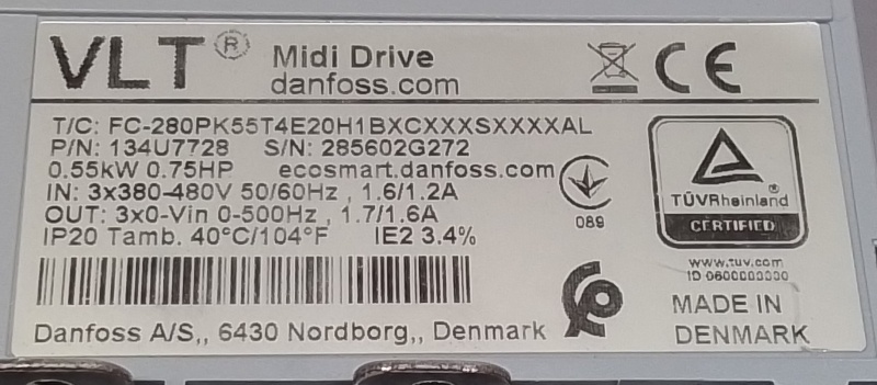 Ingang: 3x 380 - 480VAC, 50/60Hz,1.6/1.2A