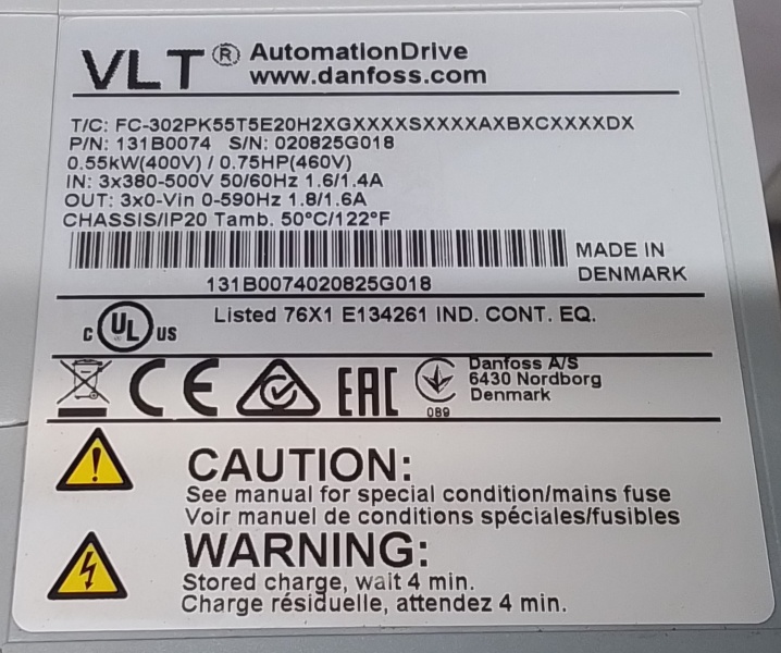 Ingang: 3x 380 - 500VAC, 50/60Hz, 1.6/1.4A