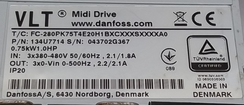 Ingang: 3x 380 - 480VAC, 50/60Hz,2.1/1.8A