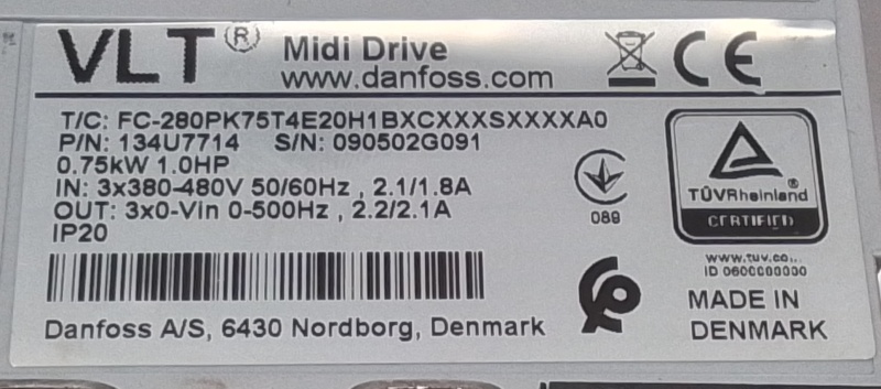 Ingang: 3x 380 - 480VAC, 50/60Hz,2.1/1.8A