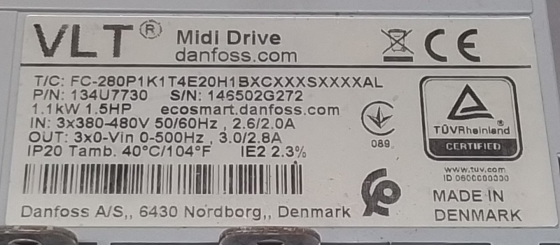 Ingang: 3x 380 - 480VAC, 50/60Hz,2.6/2.0A