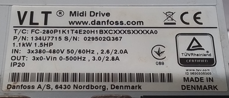 Ingang: 3x 380 - 480VAC, 50/60Hz,2.6/2.0A