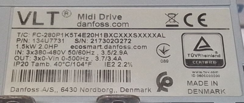 Ingang: 3x 380 - 480VAC, 50/60Hz,3.5/2.9A
