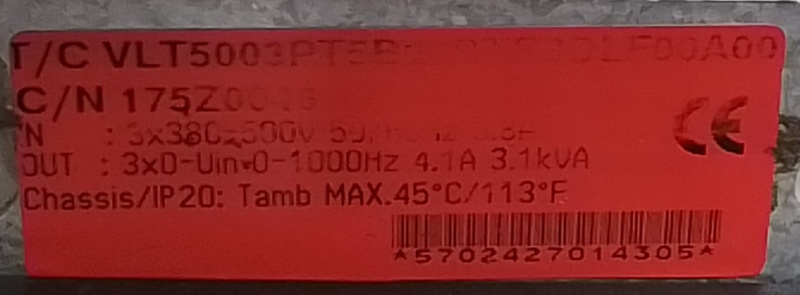 Ingang: AC 3x380-500V, 50/60Hz, 3,8A