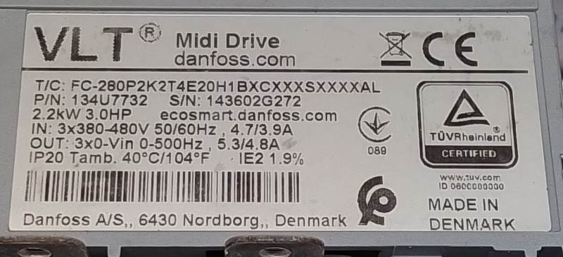 Ingang: 3x 380 - 480VAC, 50/60Hz,4.7/3.9A