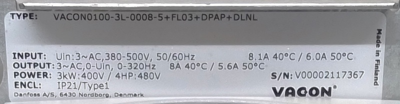 Type: VACON0100-3L-0008-5+FLO3+DPAP+DLNL