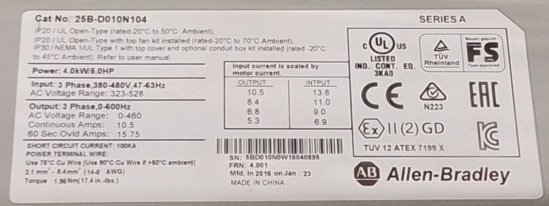 Uitgang: AC 0 - 460V, 3 fasen, 0 - 600Hz, 10,5A