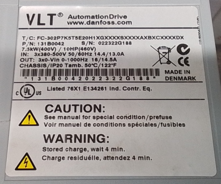 Ingang: 3x 380 - 500VAC, 50/60Hz, 14.4/13.0A