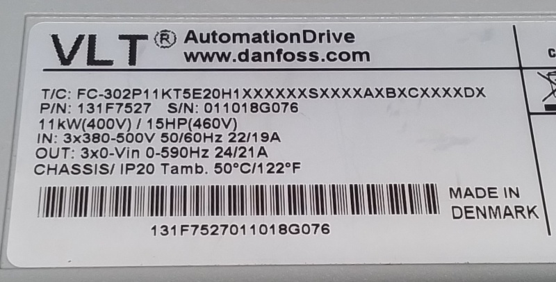 Ingang: 3x 380 - 500VAC, 50/60Hz, 22/19A