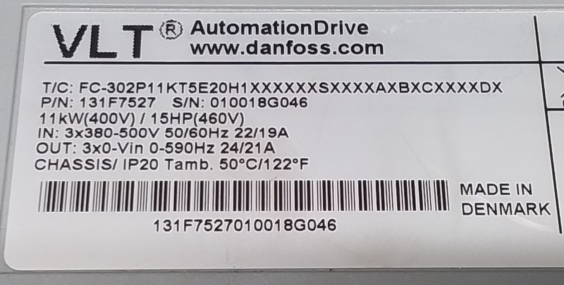 Ingang: 3x 380 - 500VAC, 50/60Hz, 22/19A