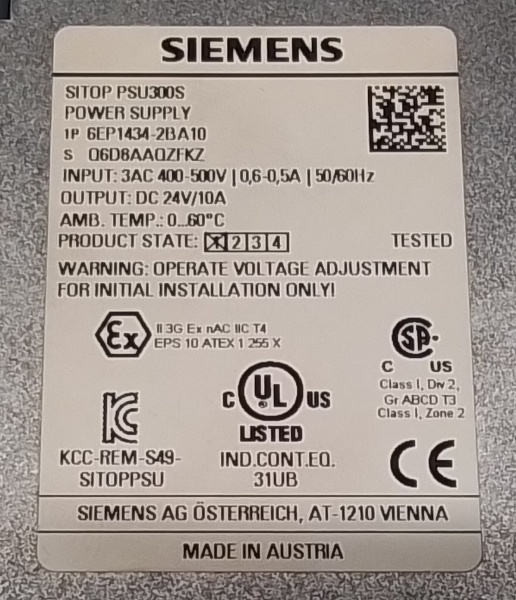 Ingang: AC 400 - 500V, 3 fasen, 0,6 - 0,5A, 50/60Hz