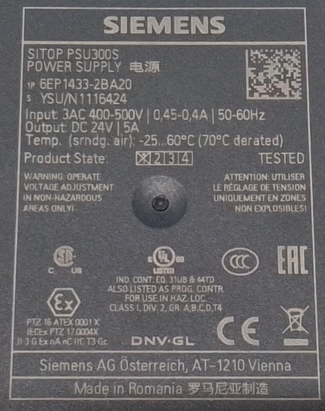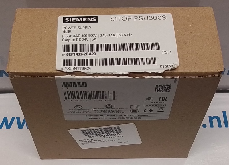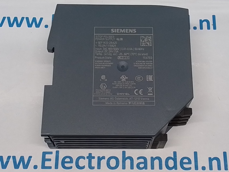 Ingang: AC 400 - 500V, 3 fasen, 0,45 - 0,4A, 50/60Hz